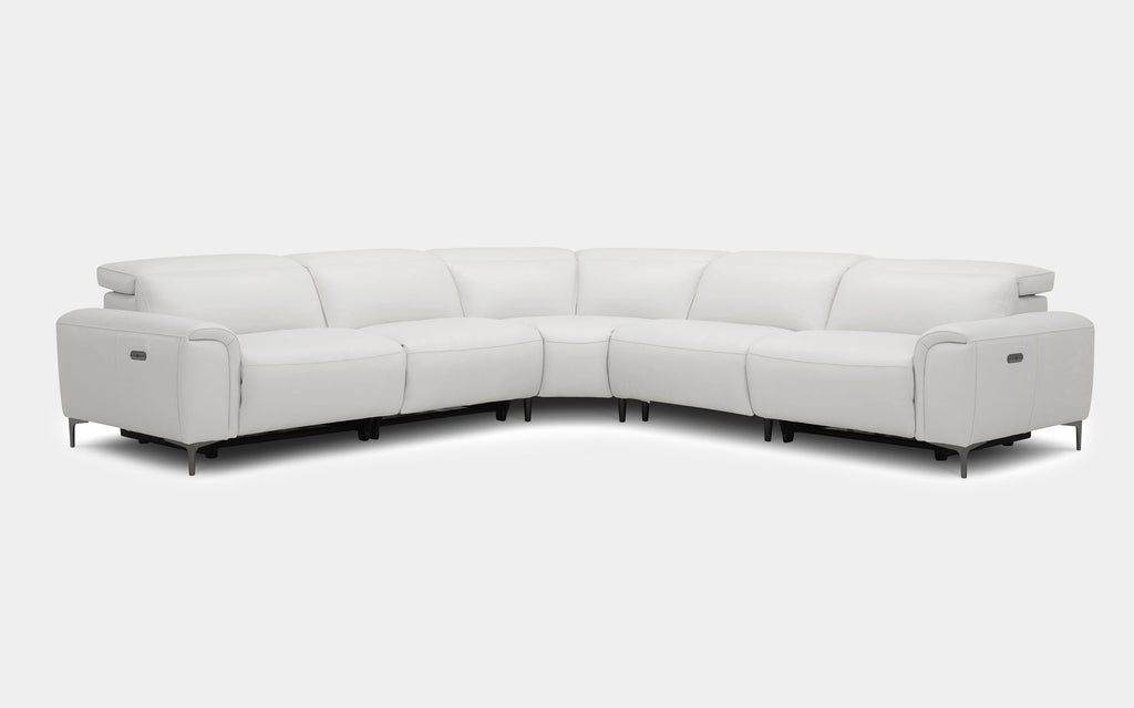 Create your very own modern reclining sectional. It features 2 power recliners and 4 adjustable headrests. Relax blissfully with family and friends.