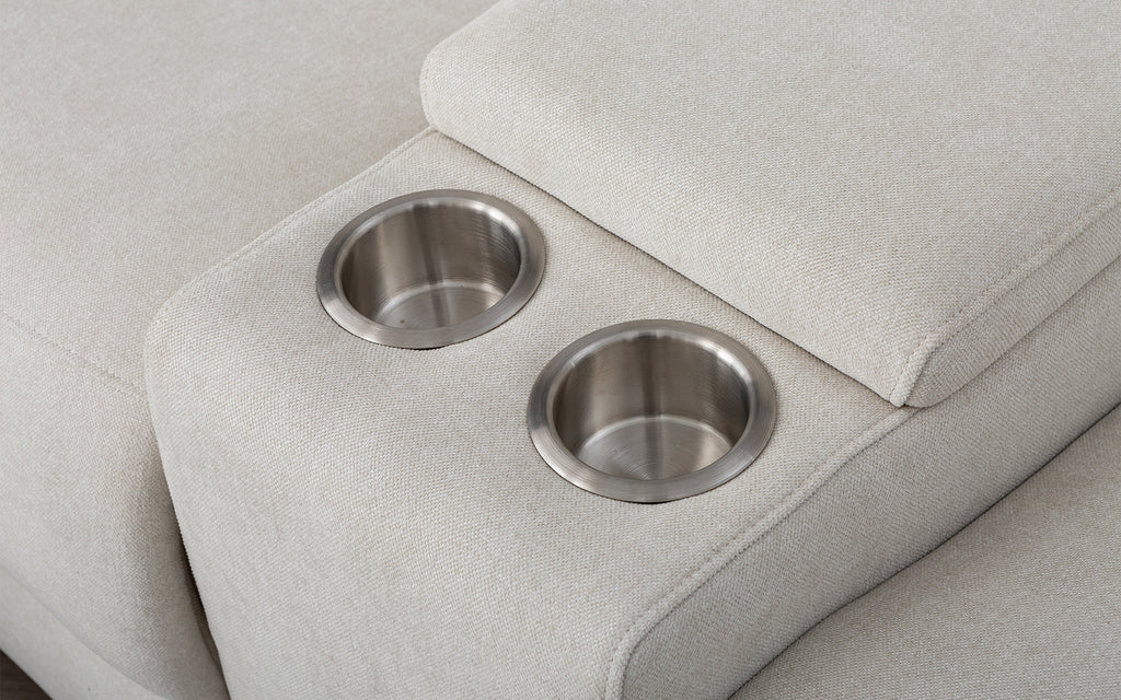 The Aristona Modern Motion Reclining Sectional is a stylish and comfortable seating option for modern living rooms. It features fabric that is durable and easy to clean, along with a console table that offers storage and a power outlet with USB ports. The motion reclining seats are adjustable and provide support for your head and neck. It's a practical and convenient choice for any modern home.